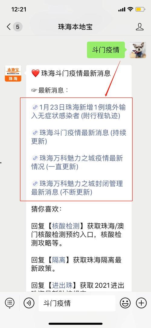 最近珠海的疫情情况可是牵动着大家的心呢!听说最近又有新的爆料出来,咱们得好好聊聊这个话题。这不,我就迫不及待地搜集了一些最新的信息,来给你揭秘珠海疫情的那些事儿。